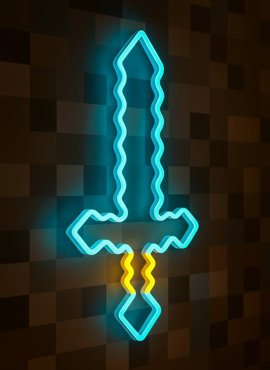 🔵 Efekt „WOW” w pokoju: Szukasz prezentu, który wywoła okrzyk radości? Diamentowy Miecz to pewniak. Świetnie wygląda solo, a jeszcze lepiej w zestawie z innymi neonami (np. kilofem lub głową Creepera), tworząc spójną aranżację gamingową.