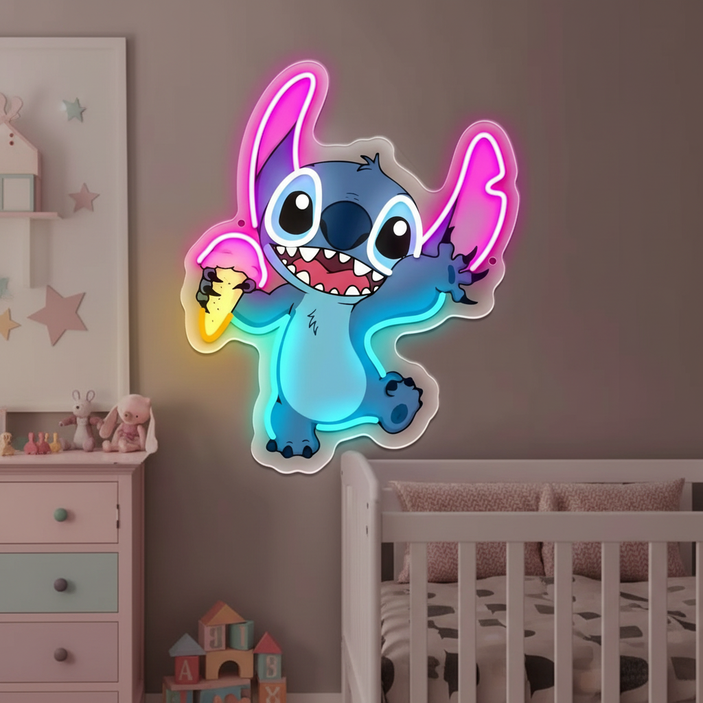 Twój ulubiony, niebieski urwis zrobił sobie przerwę od rozrabiania na małe „co nieco”. Nasz Neon LED Stitch z Lodem to absolutny hit, który łączy bajkowy klimat z radosnym, letnim nastrojem.